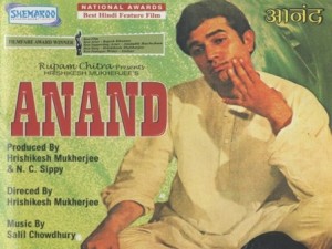मा.ऋषिकेश मुखर्जी यांचा “आनंद’ चित्रपट लोकप्रिय झाला, तो दुर्धर कर्करोगाशी झुंजणाऱ्या रुग्णाने, “आनंद’ ने जीवनाचा खरा अर्थ समजावून सांगितल्यानेच! त्या चित्रपटात आनंदची भूमिका मा.राजेश खन्ना आणि डॉक्टरची भूमिका मा.अमिताभ बच्चन यांनी केली होती. क्षणाक्षणने मृत्यू आपल्याला गाठत असल्याचे माहिती असूनही, आनंद मात्र व्यथा, वेदनांची पर्वा न करता सहवासातल्या साऱ्यांच भरभरून आनंद वाटतो. कुणालाही आपला त्रास होवू नये, याची काळजी घेतो. शेवटच्या श्वासापर्यंत आनंद द्या आणि आनंदी जगा, हे या चित्रपटाच्या कथेचे सूत्र होते. या चित्रपटातील भावणारी गोष्ट म्हणजे मा.हृषिकेश मुखर्जी ह्यांनी दाखवलेलं साधसं घरगुती वातावरण; माणसासारखी साधी माणसं, चांगली माणसं, भावनिक मानसं आणि शेवटी सगळं ठाउक असूनही फक्त आपल्या माणसाच्या प्रेमापोटी अगतिक होत अतर्क्य गोष्टी करु पाहणारी माणसं हे सारं. हे सर्व वेगळच वातावरण. मा.हृषिकेश मुखर्जींचा हाच साधेपण मनाचा ठाव घेउन जातो. फार मोठा कॅनव्हास, अतिप्रचंड दे दणादण असं काही नाही. चित्रपटात “भावनिक” प्रसंग असले तरी कंटाळ्वाणा “मेलोड्रामाटिक” पिक्चर आपण ह्यास म्हणू शकत नाही. आनंद ची भूमिका मा.राजेश खन्ना यांनी ज्या पद्धतीनं सादर केली; तरी इतरही पात्रं अगदि व्यवस्थित लक्षात राहतात. म्हणजे ती लोकं येताहेत, नुसती दिलेले संवाद बोलताहेत असं होत नाही. अगदि पात्रं जिवंत होउन आल्यासारखी वाटतात. मा.ललिता पवार ह्या एकाच वेळी कडक शिस्तीच्या पण प्रेमळ नर्स आहेत. “ए मुरारीलाल” ह्या बाष्कळ हाकेला विनाकरण “ओ” देणारा गमत्या पण “माणूसपण” जाणणारा मा.जॉनी वॉकर आहेत. काहिसा व्यवहारी, थोडासा बनेल पण मित्रांची काळजी घेणारा डॉक्टर, डॉ. कुलकर्णी म्हणजेच मा.रमेश देव, त्यांची डॉक्टरची पत्नीही म्हणजेच मा.सीमा देव. रमेश देव यांचे मित्र हे तिचेही आप्त बनलेत.असा सारा मामला. बाबु मोशाय्,अजून एक भावनिक, जरा अव्यवहारी म्हणता यावा असा, मनाने सच्चा असा एक डॉक्टर, डॉ. बॅनर्जी आहे. मा.अमिताभ बच्चन त्याकाळातील नवोदित कलाकार होते. ही एक सर्वोत्कृष्ट कलाकृती, निर्मिती होती. ‘हिंदी चित्रपटाचा सर्वोच्च बिंदू कोणता होता ?’ असे कुणी विचारलं तर उत्तर ‘आनंद’ हे येऊ शकेल.