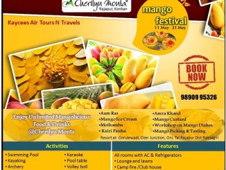 पुण्यातील केसीज एअर टुर्स आणि ट्रॅव्हल्स ( Kaycees Air Tours N Travels ) च्या मदतीने लवकरात लवकर बुकींग करुन रत्नागिरीमधील Cherilyn Monta ह्या Resort ला भेट द्या आणि आपल्या सगळ्यांच्याच आवडत्या आंबा महोत्सवाचा आनंद घ्या. Kaycees Air Tours N Travels यांनी आपल्यासाठी काही खास आकर्षक अशा Packages ची व्यवस्था आकर्षक दरात केली आहे. Individual Booking तसेच Group Booking बद्दल माहिती मिळवण्यासाठी खालील क्रमांकावर संपर्क साधा : Kaycees Air Tours N Travels 9890995326