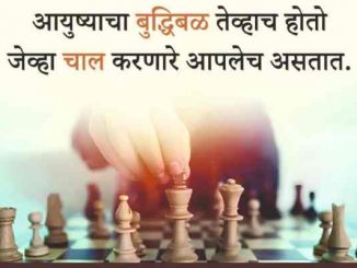 आयुष्य आणि बुध्दिबळाचा खेळ एक आशयार्थाने तुलना ? बुध्दिबळाचा डाव सुरु होतो तेंव्हा दोघां कडेही सामर्थ सारखेच असतें. जसें जसें एकमेकांकडुन चाली रचल्या जातात त्याप्रमाणे एकमेकांच्या शक्तिचा कस लागतो. […]