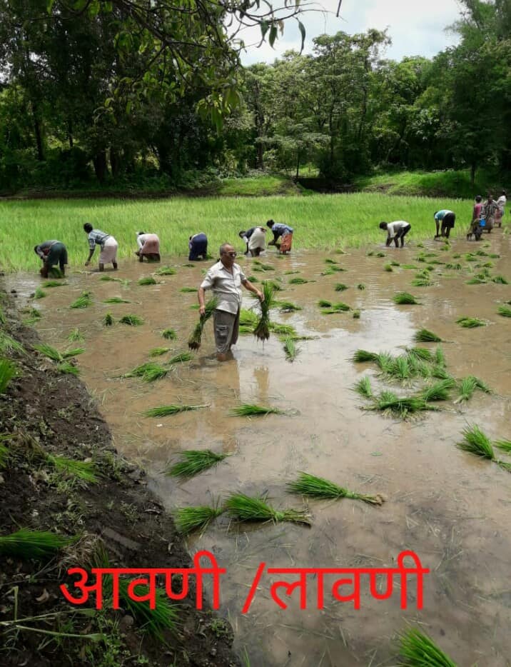 यावर्षी पावसाने संपूर्ण महाराष्ट्रासह कोकणातील आमच्या रायगड व ठाणे जिल्ह्यात सुद्धा थैमान घातले आहे. जुलै 2005 च्या रायगड आणि ठाणे जिल्ह्यात पुरामध्ये भात शेतीचे मोठ्या प्रमाणात नुकसान झाले होते. आजपासून 14 वर्षांपूर्वी जेवढी लोकं या जिल्ह्यात शेती करायचे त्याचे प्रमाण रायगड मध्ये तेवढे नसले तरी ठाणे जिल्ह्यात मात्र जवळपास निम्म्यावर आले आहे. पाऊस पडल्यावर नांगरणी भाताची पेरणी मग युरिया व तत्सम खते. भाताचे आवण म्हणजे रोप लावण्यायोग्य झाले की शेतात चिखलणी करून भाताची लावणी करायची. हे आवण खणून म्हणजे उपटून त्याचे मूठ बांधायचे. मूठ एकत्र बांधून चिखल झालेल्या शेतात नेऊन लावायचे. लावणी झाल्यावर तण आणी गवत काढण्यासाठी बेनणी करावी लागते. एकदा का भाताचे दाण्याने भरलेले सोनेरी पिक आले की कापणी, कापल्या नंतर दोन दिवस उन्हात कापलेली भाताची कडबं वाळल्यावर त्याचा कवळ्या करून पंधरा वीस कवळ्या एकत्र करून भारे बांधायचे. एवढी मेहनत करून आणी चार महिने वाट पाहून भारे बांधले जातात. म्हणूनच आमच्या आगरी जातीत ” हो झे त्यानच पके भारे बांधल्यानं ” अशी म्हण प्रचलित झाली असावी असे वाटते. भारे बांधून पण काम संपत नाही. हे भारे डोक्यावर घेऊन शेतांच्या बांधावर चालून खळ्यात आणले जातात. खळ्यात मग हे भारे झोडले जातात. सगळे भारे झोडून झाल्यावर खळ्यात जमा झालेली भाताची रास म्हणजे आमच्या भाषेत मांद गोळा करून तिला वेताच्या सुपाने वारविले जाते. असे करत असताना इंग्रजी c अक्षरा प्रमाणे भात घमेलातुन ओतला जातो ज्याला कणा देणे असे सुद्धा बोलले जाते. या कण्यावर जोराने सुपाने वारा घातला जातो ज्याला हारपणे असे बोलले जाते. हे असे हारपणे सगळ्यांनाच जमते असे नाही कारण सुप हातात धरून विशिष्ट प्रकारे पाठीवर मागे नेऊन छातीसमोर जोरात आणावे लागते. कणा देऊन झाल्यावर मग भात एकदाचा पोत्यात भरला जातो. मग गरज असेल तेवढा भरडायला राइस मिल मध्ये नेला जातो.