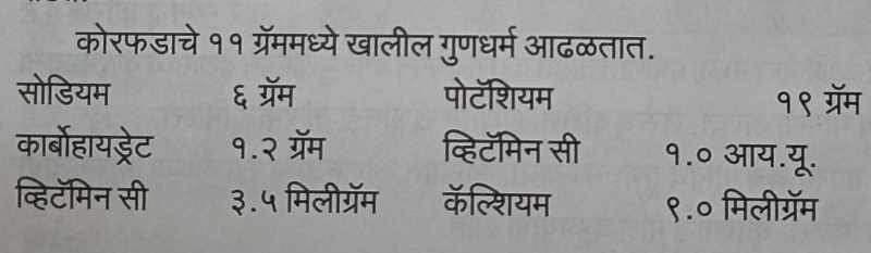 कोरफडाचे ११ ग्रॅममध्ये खालील गुणधर्म आढळतात.