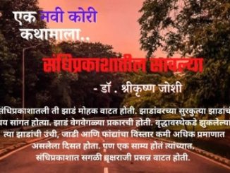 आम्ही वृद्ध झालोत, पण टाकाऊ नाही झालोत. हा संधिप्रकाश दिसतोय ना तो आमचा ऊर्जास्रोत आहे. सूर्य मावळल्यानंतर आणि अंधार पडायच्या आधी जो प्रकाश असतो ना, त्याला संधिप्रकाश म्हणतात. आमची सावली संधिप्रकाशातसुद्धा दिसते. ती अनुभवानं समृद्ध असते. त्या सावलीत बसून तुम्ही स्वतःचा शोध घेऊ शकाल. जीवन कसं जगायचं हे आम्हाला, आमच्या सावलीला विचारा. सकारात्मक आयुष्य मिळेल तुम्हाला. आनंदी जीवनाचे धडे गिरवायचे असतील तर संधिप्रकाशातील सावलीत बसण्याखेरीज पर्याय नाही. बघ, तूच ठरव, म्हातारीचं ऐकायचं की आपलाच हेका चालवून आपलं अस्तित्व धोक्यात घालायचं ? ” […]