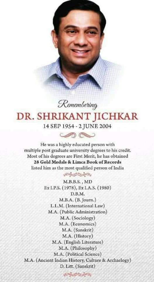 कच माणूस डॉक्टर होता, तो वकिलही होता, तो आयपीएस म्हणजे जिल्हा पोलिस प्रमुख दर्जाचा अधिकारी तसंच आयएएस म्हणजे कलेक्टर दर्जाचा अधिकारी होता. याशिवाय तो पत्रकारही होता. इतकंच नाही तो किर्तनकार, आमदार, खासदार आणि मंत्रीही होता. इतक्या पदव्या मिळवणारा ज्ञानयोगी म्हणजे श्रीकांत जिचकार होय.