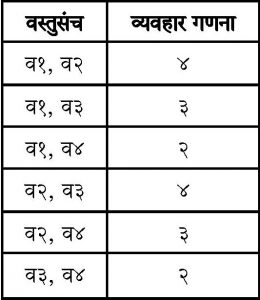 व्यवहार गणना {व१, व२} > = व्यवहार गणना (व३} व१, व२, व३ घेणारी व्यक्ती व३ पण घेईल याची शक्यता