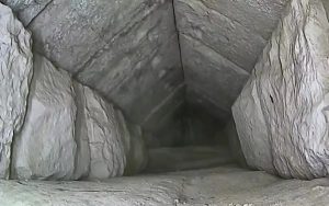 या संदर्भातली आणखी एक महत्त्वाची गोष्ट म्हणजे अगदी अलीकडेच, शेव्हरॉनच्या दगडांतल्या छोट्या फटीतून, सुमारे सहा मिलिमीटर आकाराचा लहानसा, शरीराची एंडोस्कोपी करण्यासाठी वापरतात तसा कॅमेरा आत पाठवून या मार्गिकेसारख्या पोकळीची थेट छायाचित्रं घेतली गेली. या छायाचित्रांवरून, ही पोकळी म्हणजे एक व्यवस्थित स्थितीतली मार्गिका असल्याचं स्पष्टच दिसत होतं. या मार्गिकेचं छतही बाहेरच्या शेवरॉनसारखंच बांधलं गेलं आहे. ही मार्गिका मोकळी असून, तिथे कोणत्याही मानवनिर्मित वस्तू दिसून येत नाहीत. त्यामुळे ही मार्गिका म्हणजे एखादी खोली असण्याची शक्यता वाटत नाही. एक शक्यता म्हणजे हा आतल्याच, आतापर्यंत अज्ञात असणाऱ्या एखाद्या खोलीकडे जाण्याचा मार्ग असू शकतो. दुसऱ्या शक्यतेनुसार या मार्गिकेचा संबंध पिरॅमिडच्या बांधकामाशी असू शकतो. या मार्गिकेखाली असणाऱ्या, मूळच्या प्रवेशद्वारजवळच्या भागावरचा भार कमी करण्यासाठी ही पोकळी ठेवली गेली असावी. मार्गिकेच्या स्वरूपातल्या या पोकळीचं रहस्य उलगडण्यासाठी अर्थातच आणखी संशोधनाची आवश्यकता आहे.