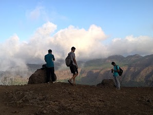होचायला आम्हाला आठ-सव्वाआठ झाले. मग थोडा श्वास घेतला, घरी फोन करून सुखरूप असल्याच सांगितलं. गुहेत उंदीर फिरत होते, म्हणजे सापाची सुद्धा शक्यता नाकारता येत नाही. आणि पहाटे थंडी वाजली तर उब मिळावी म्हून काही तरी सोय करणे गरजेच होता म्हणून थोडे शांत झाल्यावर आम्ही सरपण आणायला गेलो. सगळ वाळलेलंच होतं, सहज मोडत होतं. चारजणांनी मिळून भरपूर सरपण गोळा करून गुहेत आणून टाकलं. पूर्वी कोणी तरी तेलाची एक बाटली गुहेत ठेवली होती, काही वाती होत्या. काडेपेटी आम्ही बरोबर नेलेली. त्यामुळे शेकोटी करणं फार अवघड गेलं नाही. सहज पेटलं. मग आम्ही गुहेच्या बाहेर अंथरूण टाकलं आणि जेवायला बसलो. घरून भाकरी, बटाट्याची भाजी, सोलापूरची प्रसिद्ध शेंगदाण्याची चटणी असा मस्त बेत होता. पोट भरून जेवण झाल्यावर कुशलनी सॅक मधून कलिंगड काढलं. मग मस्त कलिंगड खाल्ल. तोपर्यंत काळ्या ढगांनी भरून गेलेलं आभाळ थोडं मोकळं झालं आणि सुंदर चंद्र बाहेर आला. चंद्राचा शांत, सुंदर निळा प्रकाश सर्व सह्याद्रीवर पसरला. रात्रभर चंद्राचा सुंदर शांत, प्रकाश कायम होता. गुहेच्या बाहेर गार वार आणि गुहेत शेकोटीमुळे उबदार हवा तयार झाली होती. मग आम्ही गुहेच्या तोंडापाशी अंथरूणं घातली. निनाद बेडेकर यांची एक आवडती कविता होती. कविता कुसुमाग्रजांची आहे. कवितेचं नावं आहे ‘निर्धार’ झोपण्यापूर्वी निनादरावांच्या आवाजात ती कविता आम्ही ऐकली (या ओळी त्याच कवितेमधल्या आहेत). गप्पा मारत बसलो. ते गप्पांचे विषय चारचौघात सांगायचे नसतात. दमलो तर खूप होतो त्यामुळे डोळ्यात झोप मावत नव्हती. बरोबर आणलेला टॉवेल डोक्याखाली घेतला आणि डोळे बंद केले… इतकी शांत झोप पुण्यात कधीच लागत नाही. त्यासाठी इतकं दमाव लागतं, सुंदर निसर्ग बघावा लागतो, गार वाऱ्याच्या समोर उभं राहून सर्व थकवा गळून जावा लागतो, तेव्हा अशी शांत झोप लागते. झोपेत मला तर स्वप्नही पडलं.