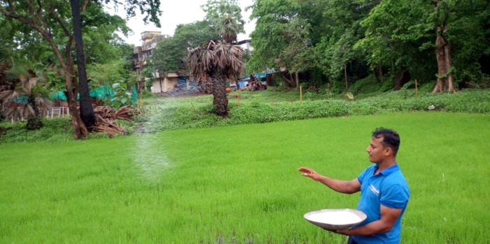 आम्ही लहान असताना बैलजोडी असलेल्या नांगरावर किंवा दात आळ्यावर वजन म्हणून बसायचो. उखळणी आणि पेरणीच्या वेळेस नांगरावर बसून शेतभर बैलांच्या शेपटीचे फटकारे खात राबाचा सुगंध घेण्याची मज्जा आणि अनुभव कधीही न विसरण्या सारखा आहे. पूर्वी एक दोन दिवस सगळ्यांची राब उखळायची आणि पेरायची घाई उडालेली असायची पण हल्ली मोजकेच शेतकरी शेती करत असल्याने पूर्वी सारखी लगबग आता बघायला मिळत नाही. भात पेरून झाल्यावर येणारे कोवळे अंकुर जस जसे मोठे होत जातात तसतस राब पोपटी रंगाचा दिसायला लागतो. जेव्हा राब जमिनीच्या वर चार इंच येतो तेव्हा त्या राबावर पांढऱ्या शुभ्र युरिया खताचा मारा केला जातो. खत मारून झाले की दोन तीन दिवसातच पोपटी रंगाचा राब गडद हिरवा रंग घेऊ लागतो. भात पेरून झाल्यापासून रोज बघत राहिले की राबाचा रंग रोजच बदलत आहे असे वाटत राहते. औषधे खते आणि आधुनिकीकरण करून उत्पादन वाढवता येते हे मान्य आहे पण एका दाण्याचे शेकडो हजार आणि लाखो दाणे करण्याची किमया फक्त सृष्टी आणि निसर्गाकडे आहे हे कोणीच नाकारू शकत नाही.