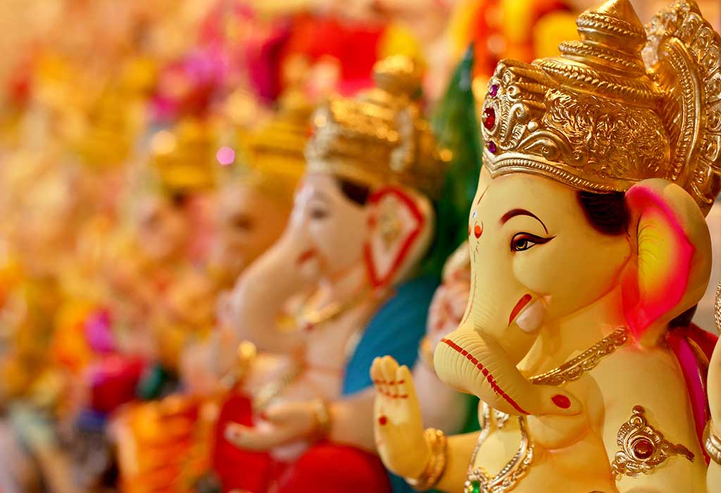 १) बालगणपती – या मूर्तीचे स्वरूप बालकाप्रमाणे असावे. ही मूर्ती चतुर्भुज असते. आंबा, केळे, फणस व ऊस या चार वस्तू चार हातात असतात. शुंडेमधे कवठ धरलेले असते. या मूर्तीचा रंग उगवत्या सूर्याप्रमाणे असावा असे सांगितले आहे.