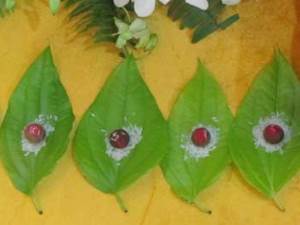 देवपूजेचे वेळी देवापुढे नागवेलीची पाने व त्याच्यावर सुपारी ठेवण्याचा कुलाचार आहे. लग्न, मुंज आदी मंगलकार्यप्रसंगी देखील अतिथींना पान सुपारी देण्याची प्रथा आहे. नागवेलीच्या पानांना विड्याची पाने व पोफळी झाडाच्या फळाला सुपारी म्हणतात. देठासहित असलेले विड्याचे पान आपल्या हृदयाचे प्रतीक म्हणून समजले जाते. हे पान हिरवेगार असून मनाला अल्हाद देणारे असते. विड्याच्या पानाला त्यात सुपारी व कात […]