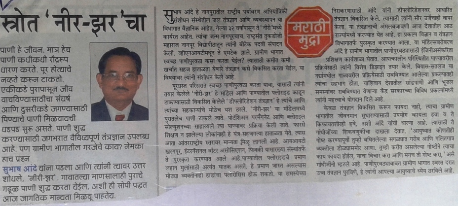 सुभाष आंदे यांच्याविषयी महाराष्ट्र टाईम्सच्या म.टा. नोंद या सदरात प्रकाशित झालेला स्त्रोत ‘नीर-झर’ चा हा लेख वाचा.